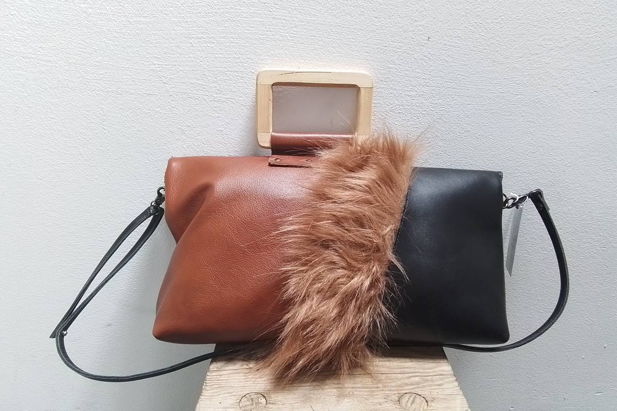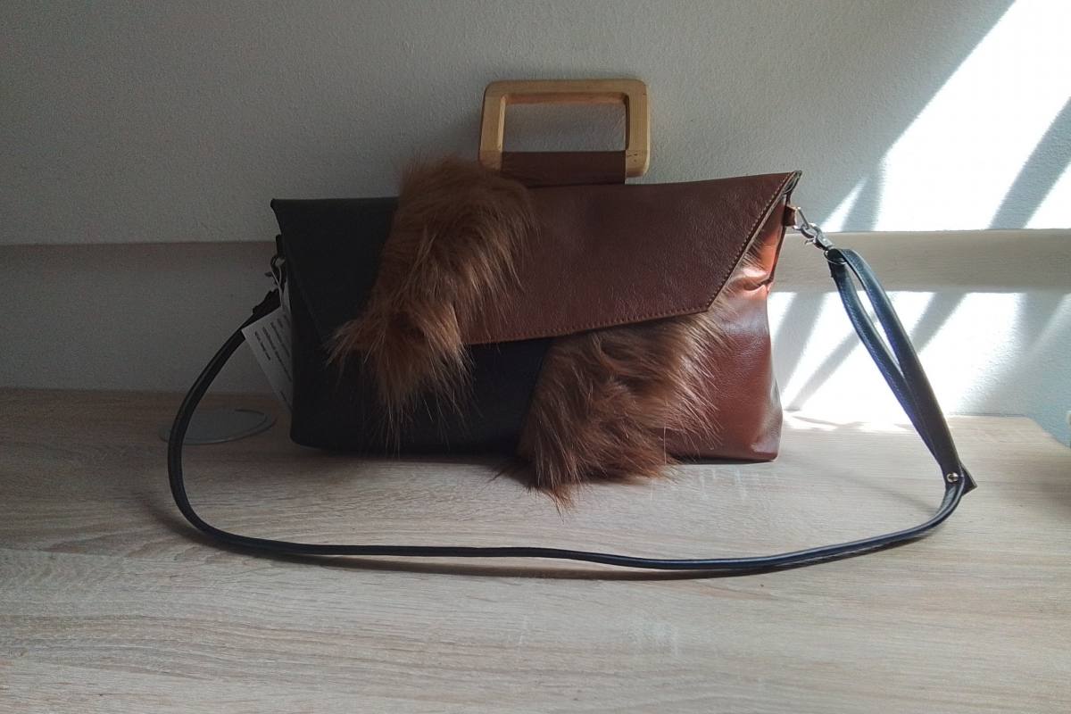 Torba je srednjevelika, unikatna, prostorna, priročna, modna,asimetrična.... Torba ima dodan lesen ročaj ki je tudi unikaten in asimetričnih oblik...Torbica ima dodano umetno krzno in naredi torbico še bolj unikatno posebno....