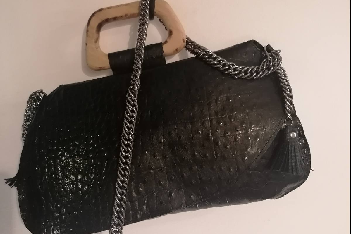 Torba je srednjevelika, unikatna, prostorna, priročna, modna,asimetrična.... Torba ima dodan lesen ročaj ki je tudi unikaten in asimetričnih oblik...in dolgo ketnico za nošenje čez ramo....
