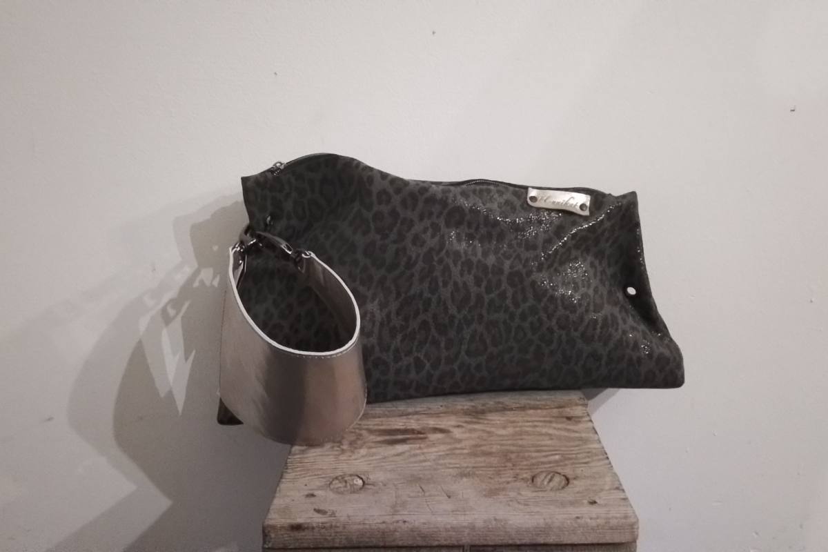 Torbica v sivi barvi z nežnim leopardjim vzorcem je lahko krasen dodatek stilu ki ga želite ustvariti.