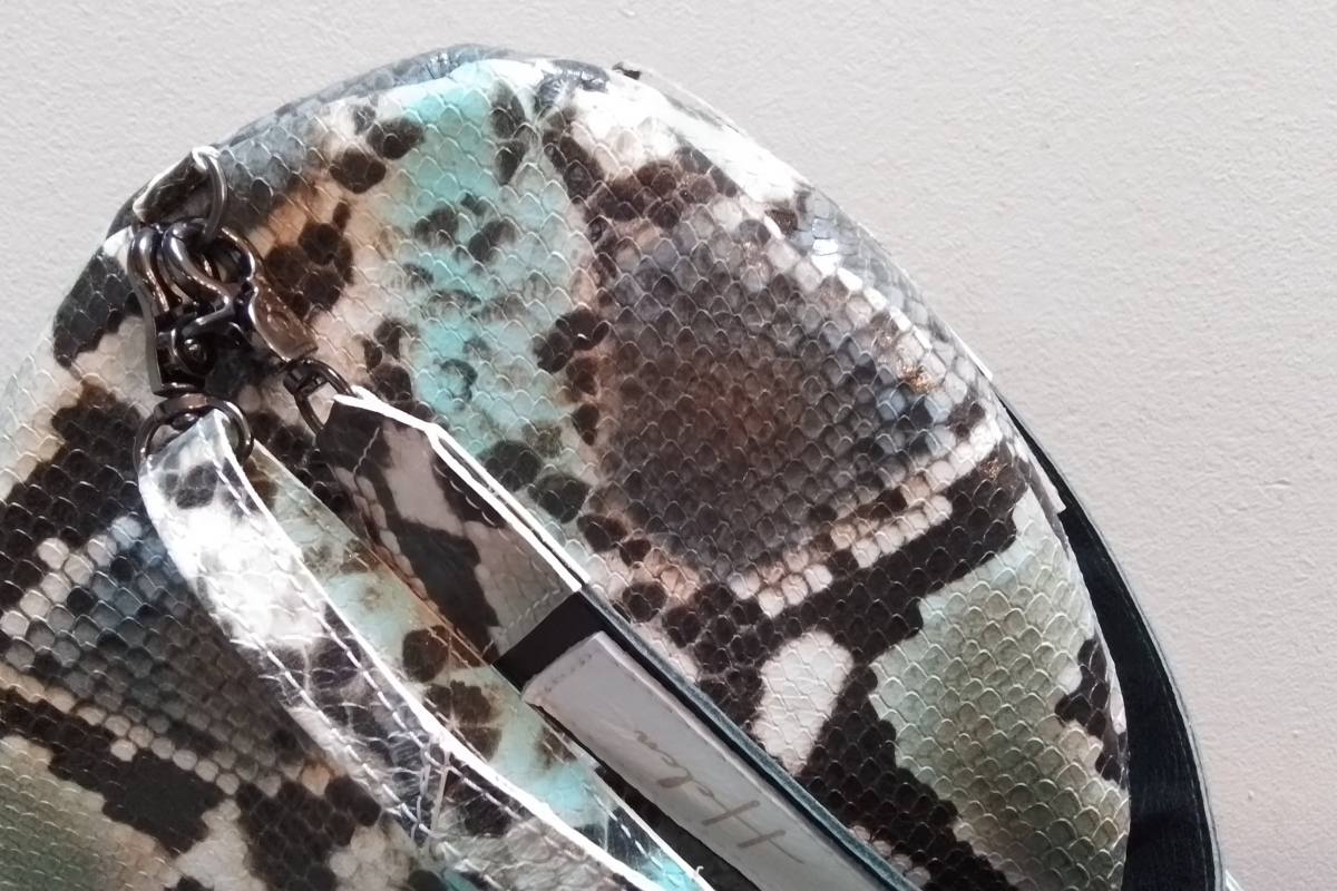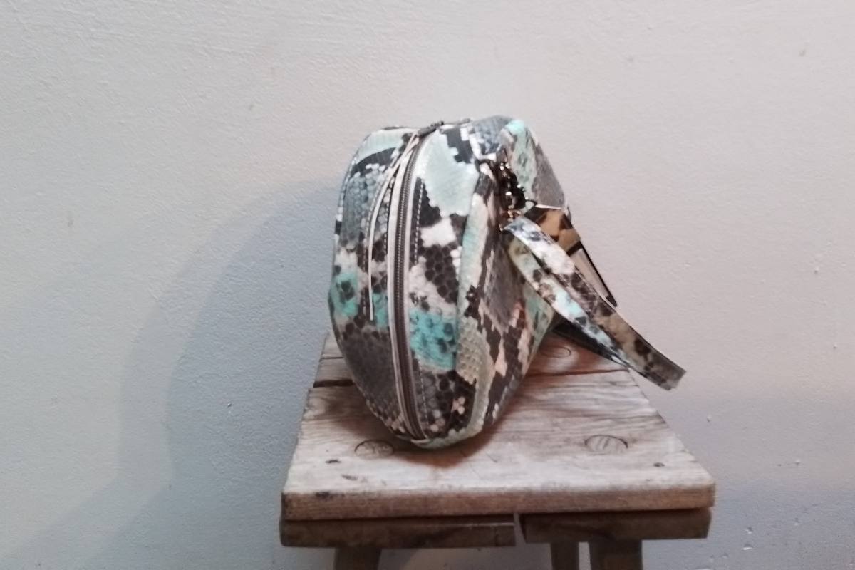 Unikatna torbica v modro zeleni barvi z vzorcem pitona za dame vseh starosti. Torba je manjša, unikatna, prostorna, priročna, modna,.... na notranji strani torbice je žep na zadrgo za dragocenosti ....in seveda za ključe od avta, ki jih nenehno iščemo po torbici.....