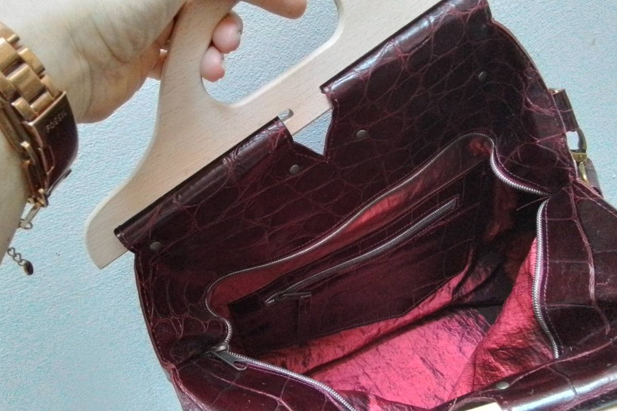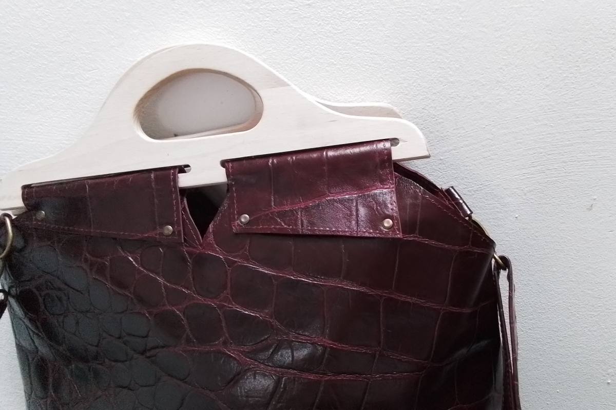 Naj bodo to kavbojke,hlače,obleka....Na notranji strani ima žep na zadrgo in zgoraj ima tudi zadrgo.Leseni ročaji za nošenje v roki in daljši pas za nošenje na rami ali čez ramo.