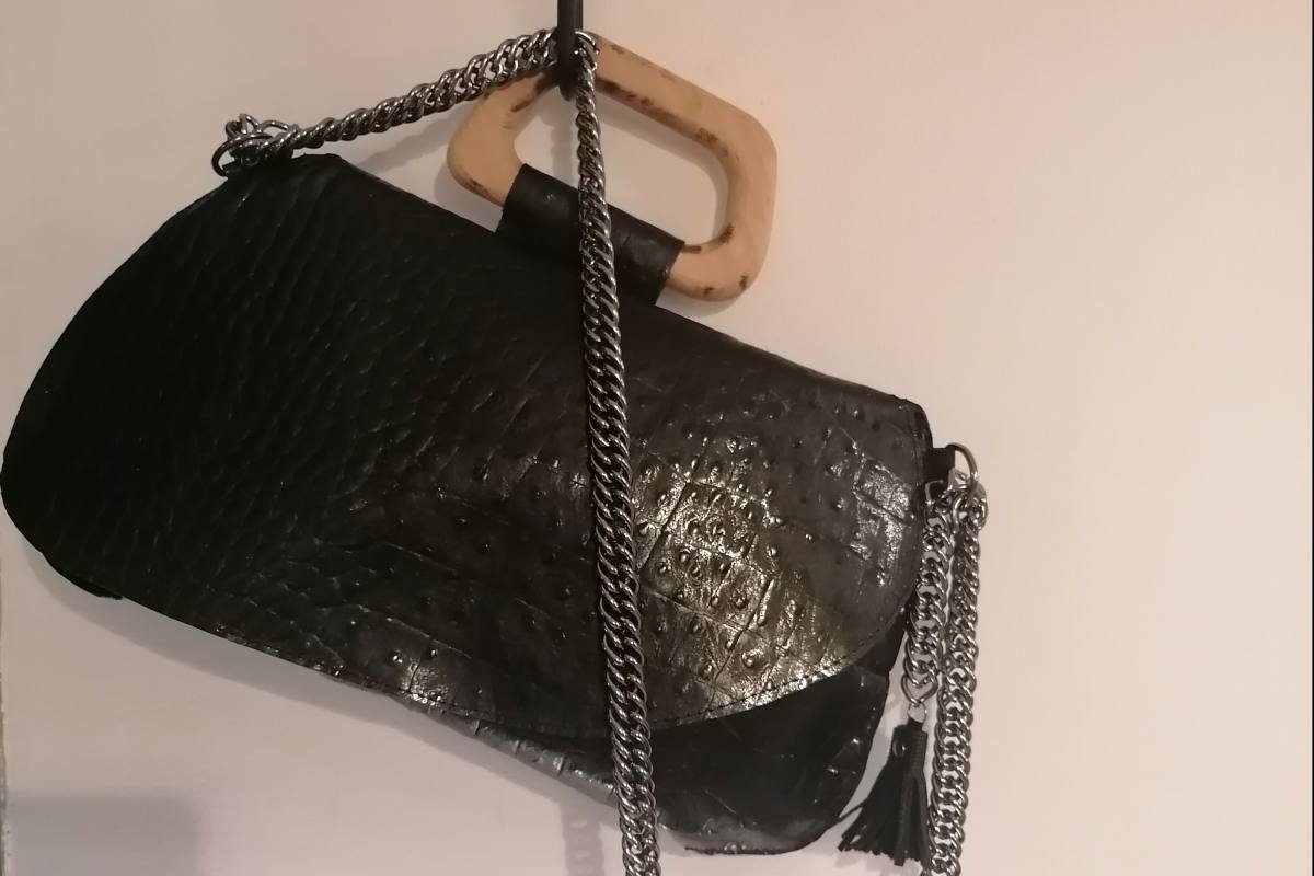 Torba je srednjevelika, unikatna, prostorna, priročna, modna,asimetrična.... Torba ima dodan lesen ročaj ki je tudi unikaten in asimetričnih oblik...in dolgo ketnico za nošenje čez ramo....