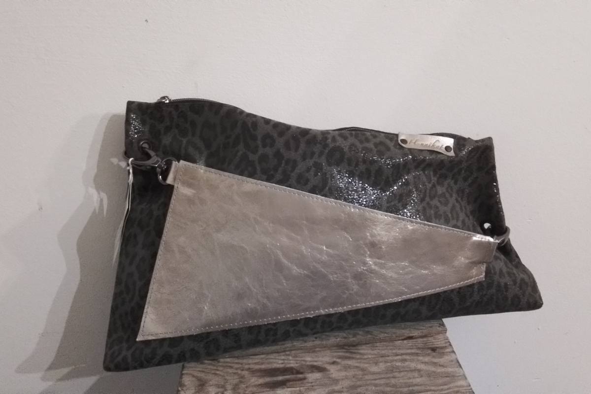 Torbica v sivi barvi z nežnim leopardjim vzorcem je lahko krasen dodatek stilu ki ga želite ustvariti.