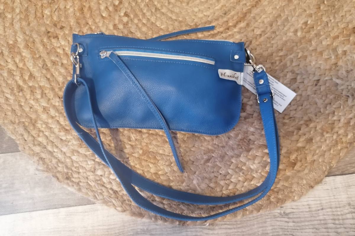 Unikatna majhna torbica v modri barvi. Torbica ima nastavljiv pas tako, da torbico lahko nosite na rami,čez ramo ali okoli pasu.Ta unikatna torbica ima spredaj žep na zadrgo za kakšno malenkost in ravno dovolj velika za telefon,denarnico in še kaj.....