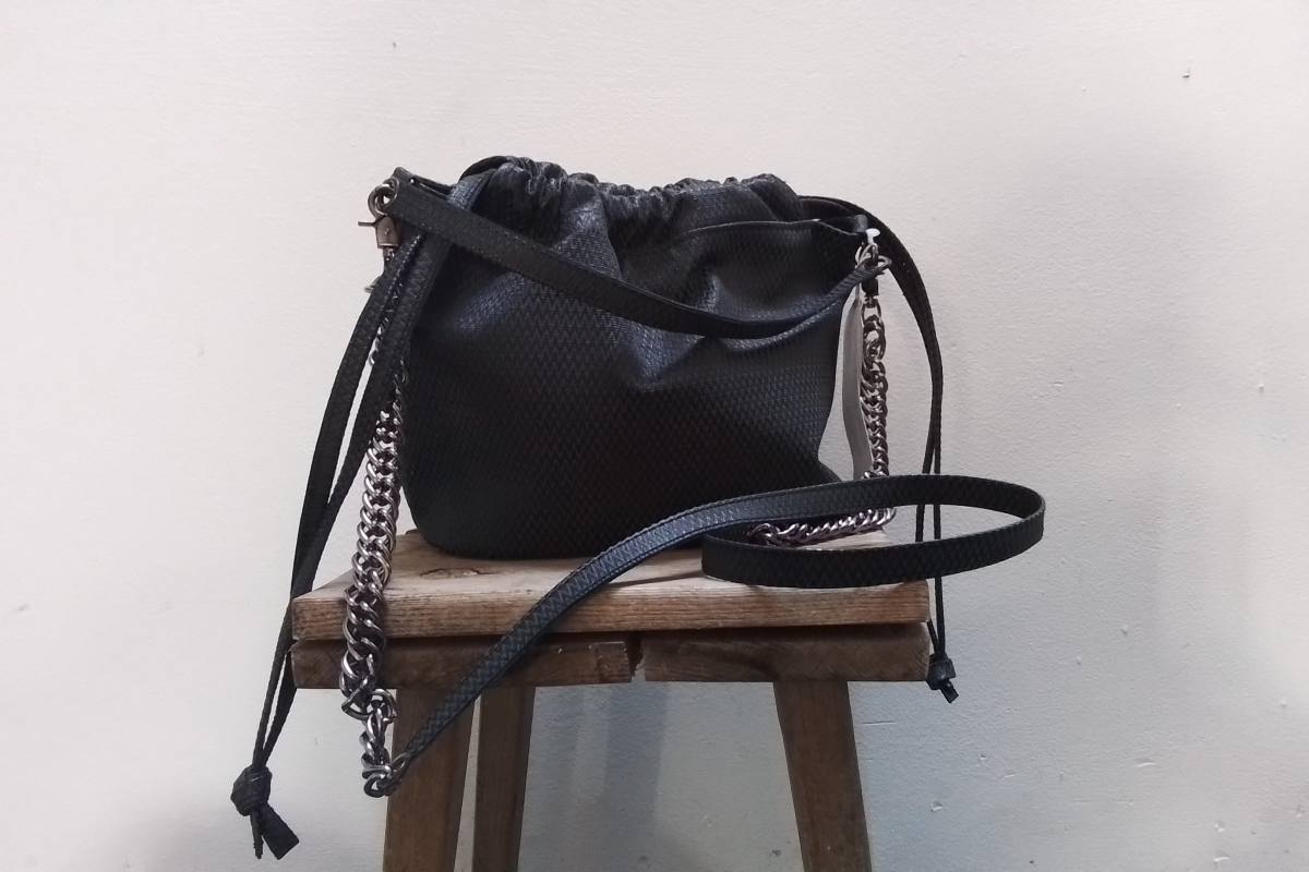 Unikatna torbica v črni barvi za dame vseh starosti. Torba je manjša, unikatna, prostorna, priročna, modna, ....